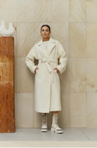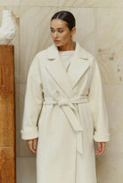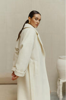 Voluminous Belted Ivory Wool Coat